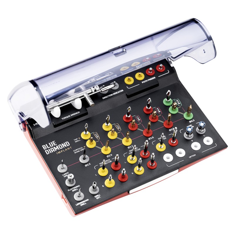 Include toate instrumentele necesare pentru inserarea implanturilor dentare – freze, chei, insertoare – organizate logic și sterilizabile. Asigură eficiență și siguranță în timpul intervențiilor chirurgicale.